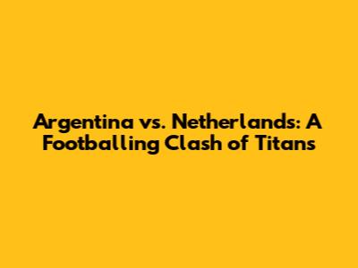 Argentina Vs. Netherlands: Epic Football Showdown