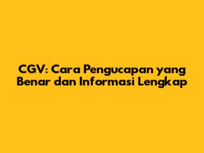 CGV: Cara Pengucapan Yang Benar Dan Informasi Lengkap
