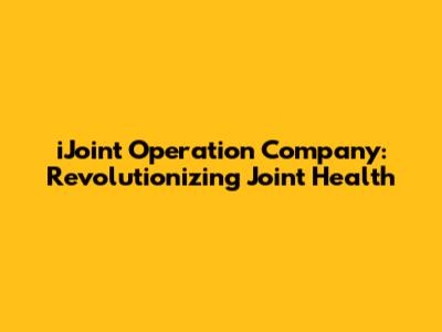 Welcome, guys! Today, we're diving deep into iJoint Operation Company, a game-changer in the world of joint health. If you're dealing with creaky knees, stiff elbows, or any other joint-related issues, you've come to the right place. We'll explore what iJoint is all about, how it's revolutionizing the industry, and why it might be the solution you've been searching for.