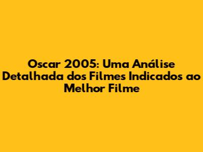 Relembrar os indicados ao Oscar de 2005 é uma ótima maneira de celebrar a história do cinema e apreciar a qualidade das produções da época. Cada um dos filmes indicados tem sua própria história e méritos, e a diversidade de gêneros e estilos torna essa edição ainda mais especial. Se você ainda não assistiu a algum desses filmes, aproveite a oportunidade para embarcar nessa jornada cinematográfica e descobrir por que eles foram tão aclamados. E, se você já assistiu, que tal rever e relembrar as emoções que eles proporcionaram? O cinema tem esse poder de nos transportar para outros mundos e nos fazer sentir diversas emoções. Então, prepare a pipoca, escolha seu filme favorito e aproveite essa experiência única! Afinal, o cinema é uma arte que nos une e nos faz sonhar.