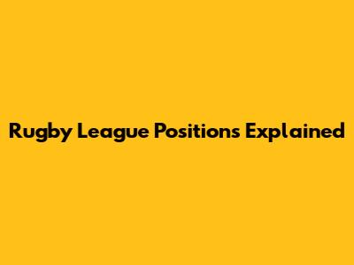 Rugby League Positions Explained